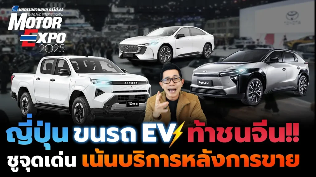 ในงาน Monster Expo และมหกรรมยานยนต์ MOT Expo 2025 ที่ Challenger เมืองทองธานี ค่ายรถยนต์ญี่ปุ่นได้เริ่มเปิดตัวรถยนต์ไฟฟ้า (Electric Vehicle หรือ EV) หลายรุ่น เพื่อสู้ศึกชิงส่วนแบ่งตลาดกับค่ายจีนที่เติบโตอย่างรวดเร็วในบ้านเรา โดยค่ายญี่ปุ่นเน้นจุดเด่นเรื่องบริการหลังการขายเพื่อเป็นข้อได้เปรียบเหนือคู่แข่ง